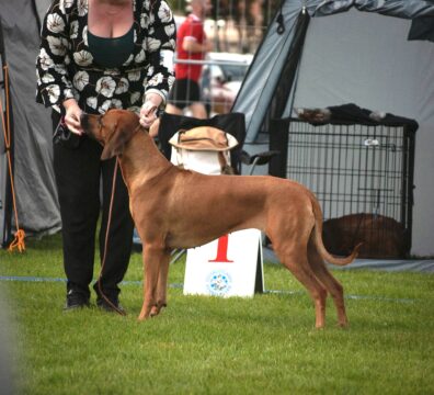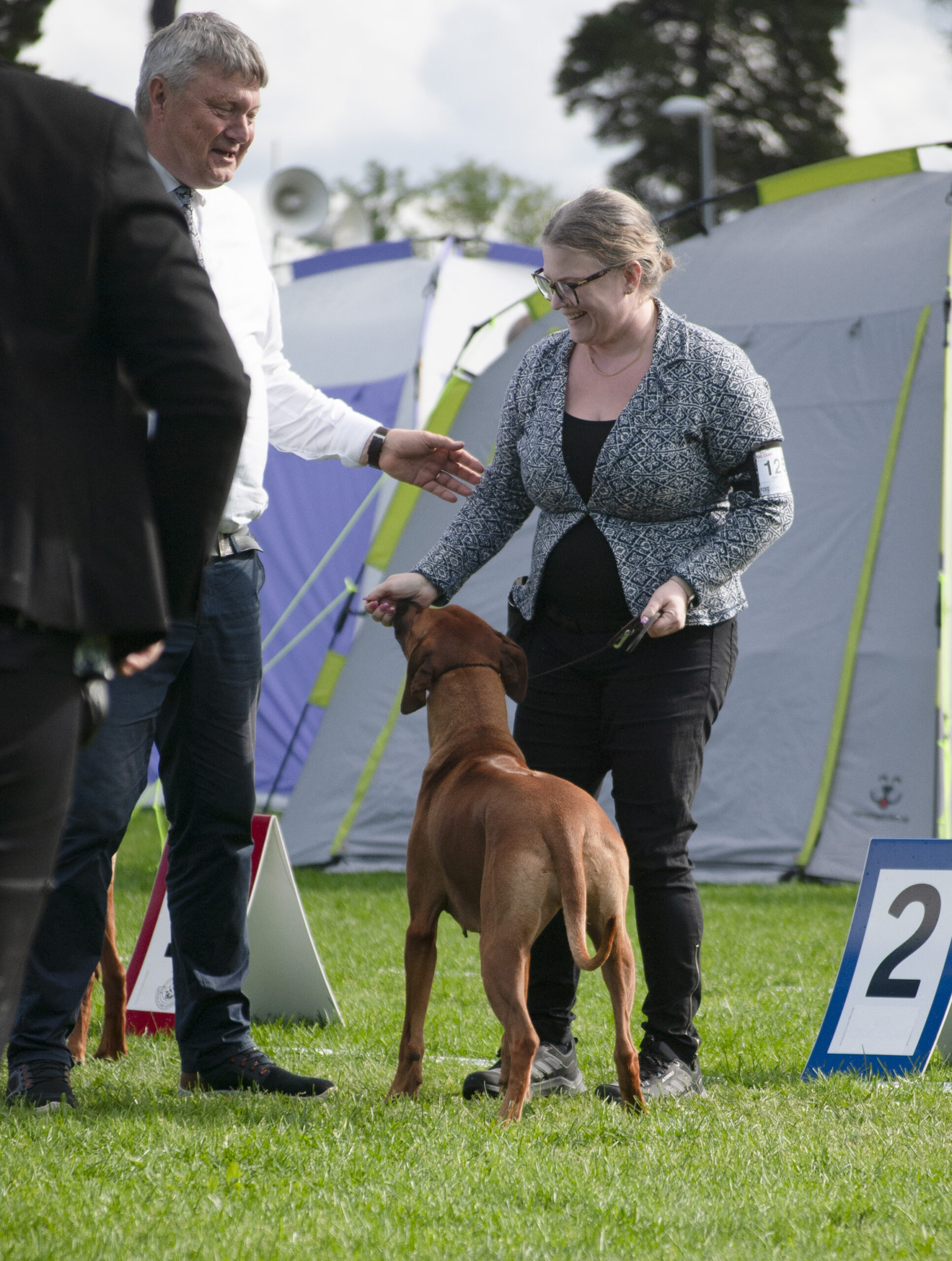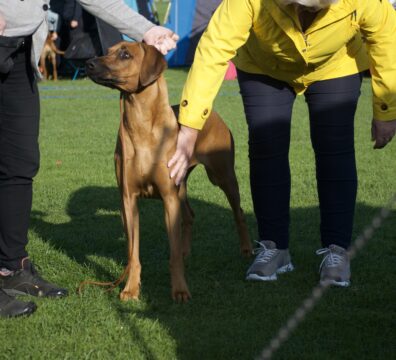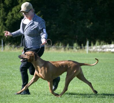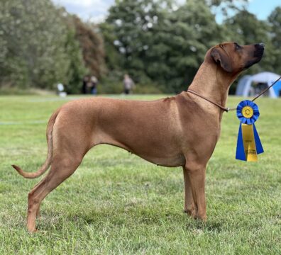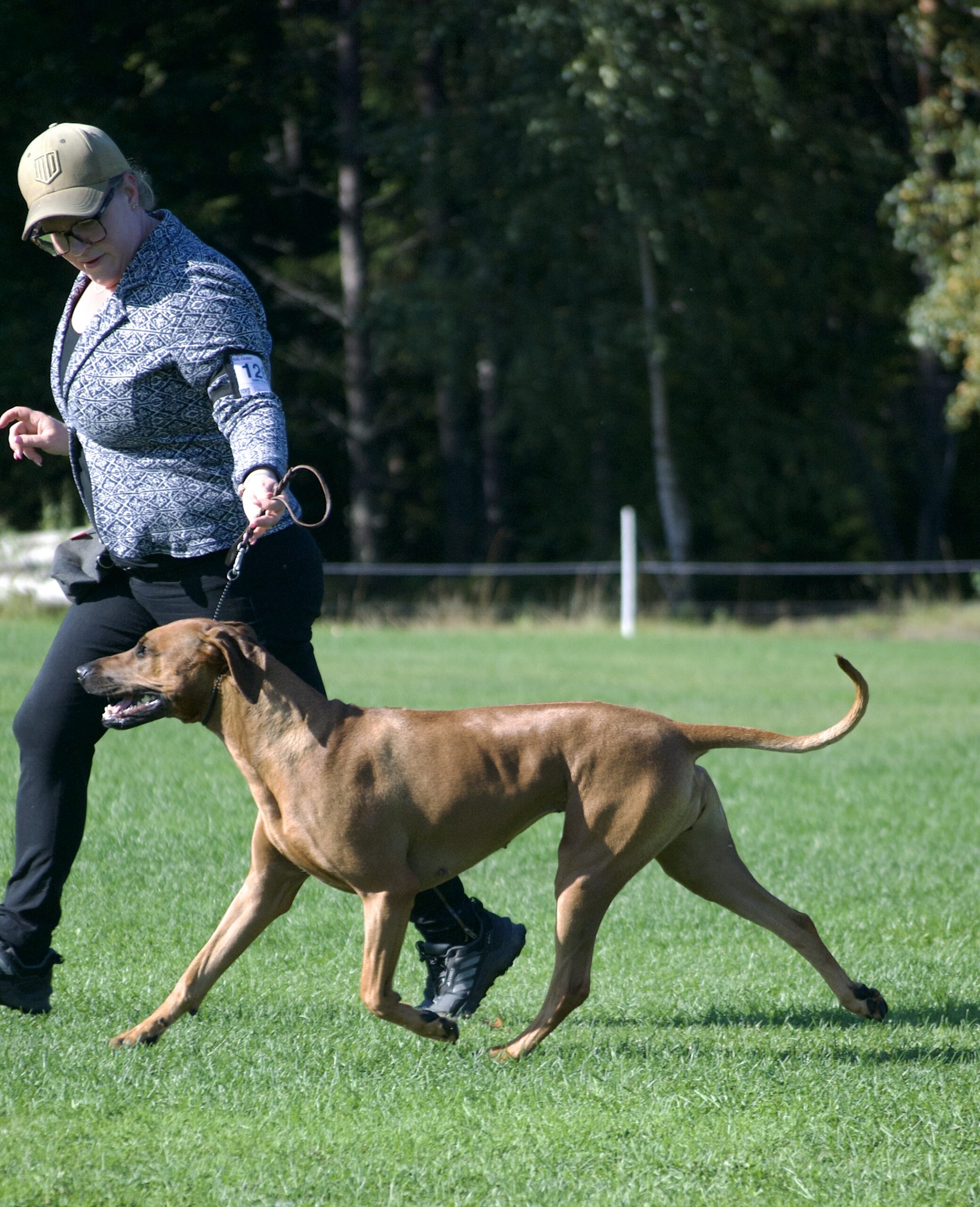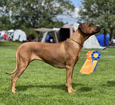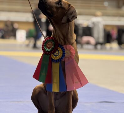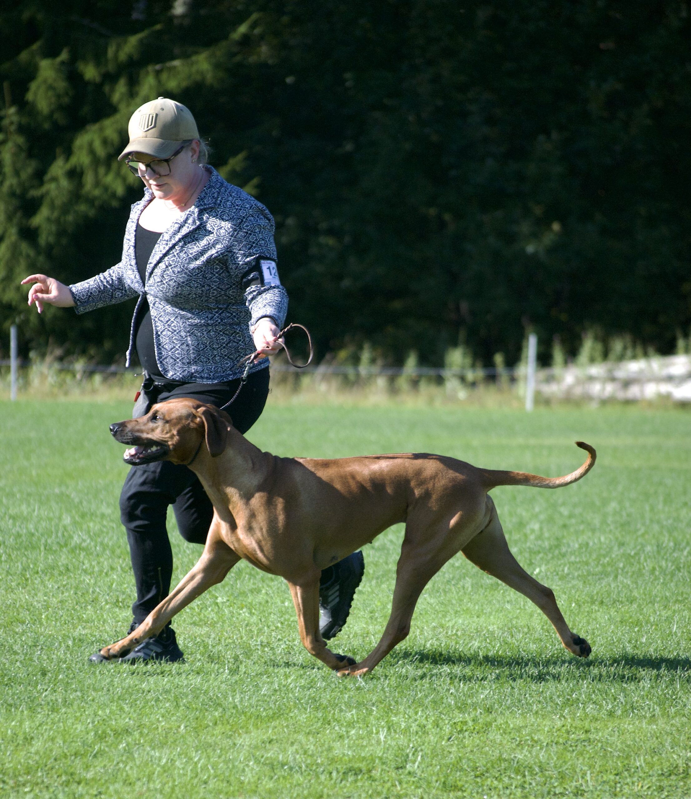 From the beginning Hedda has shown us what a remarkable girl she is. She loves attention,cuddling, people in general and other animals. She gets along very well with both our other dogs and our two cats. She is sweet and very brave – not afraid of anything. Very easy to bring along and handle in every environment. Like most young ridgebacks she is always hungry, still quite intensive and also very interested in game and hunting. Besides of showing, which she has proven to excel at, we have also introduced her to game tracking and agility. Both which she loves and is very good at.