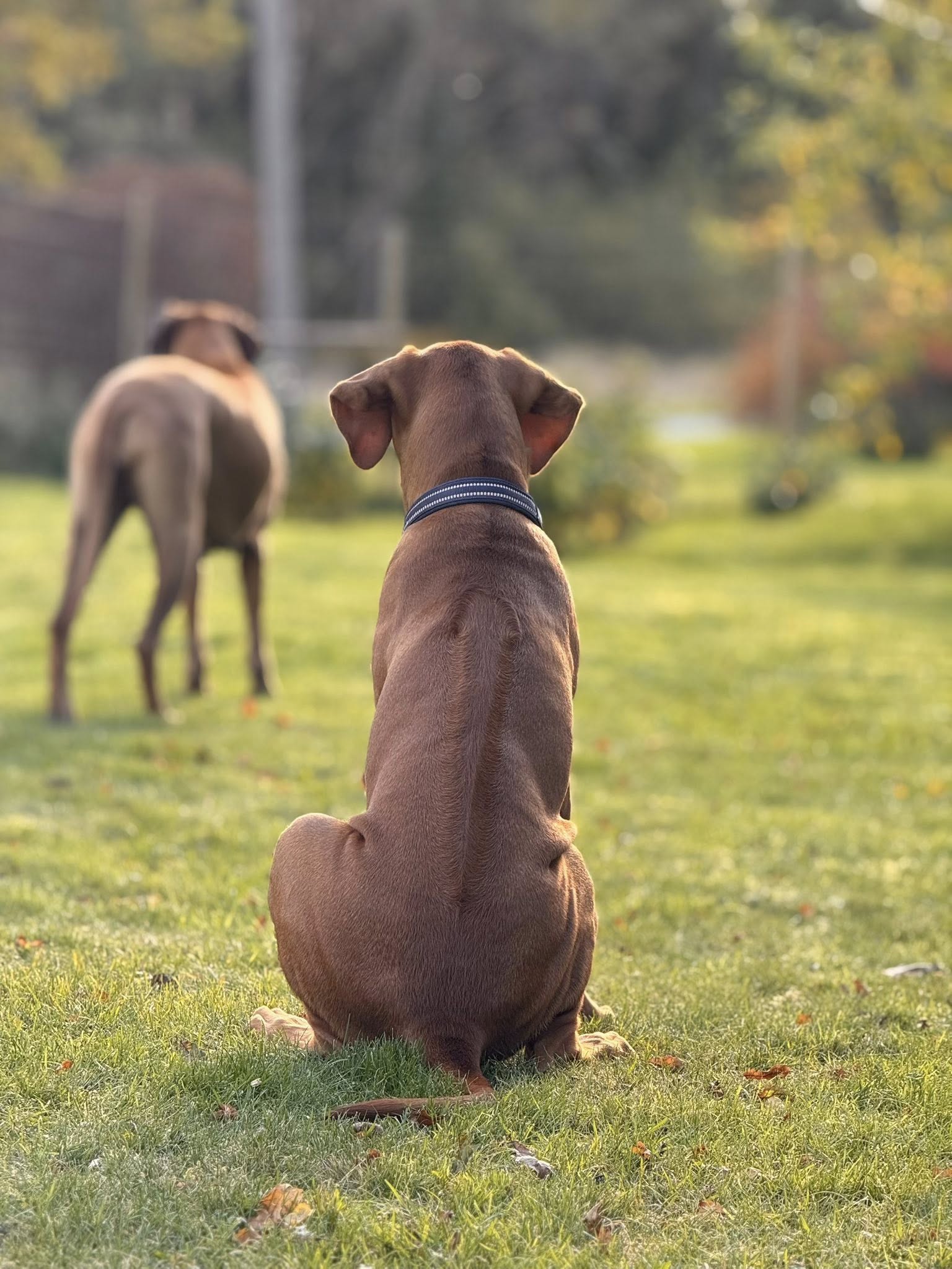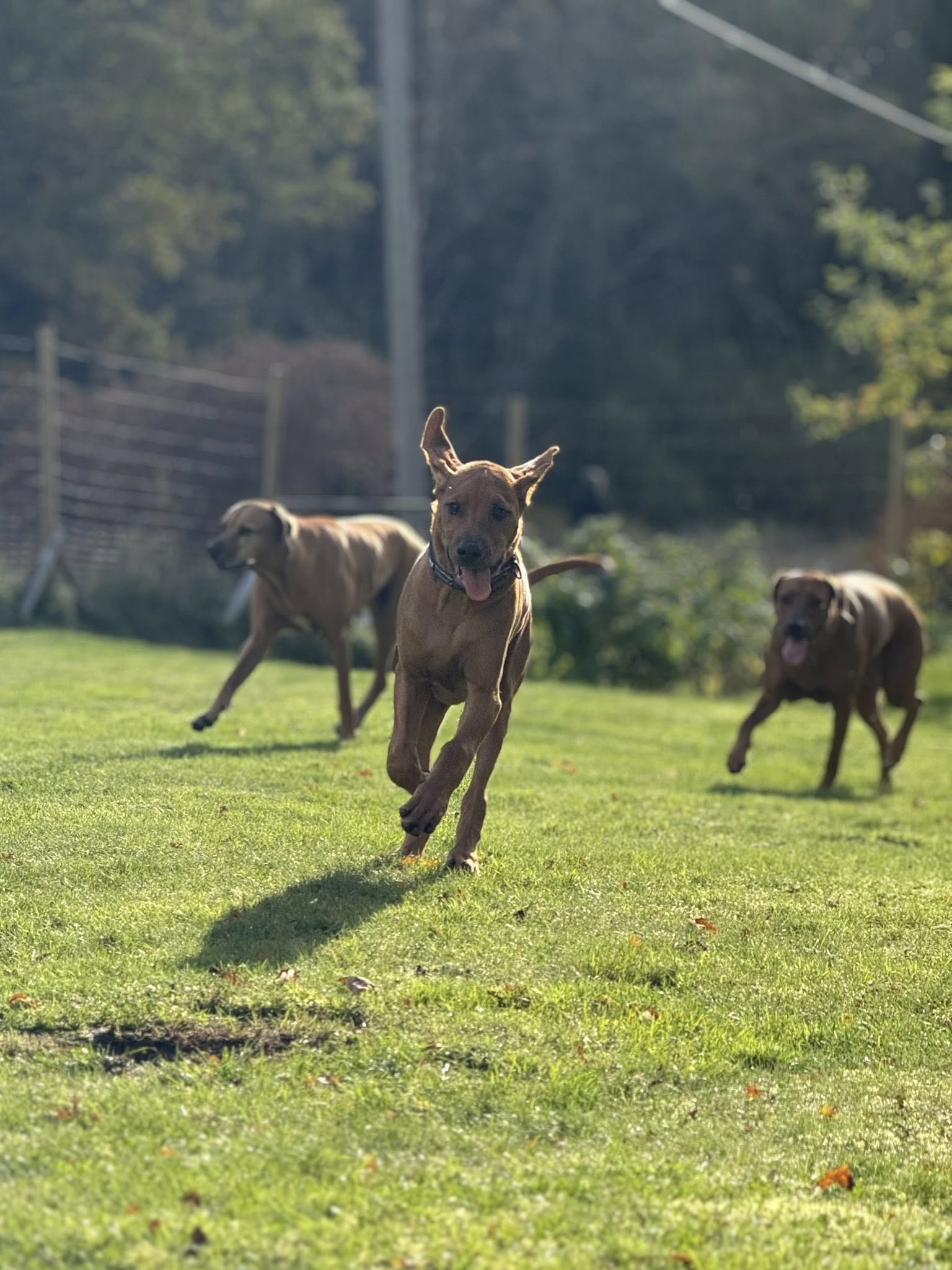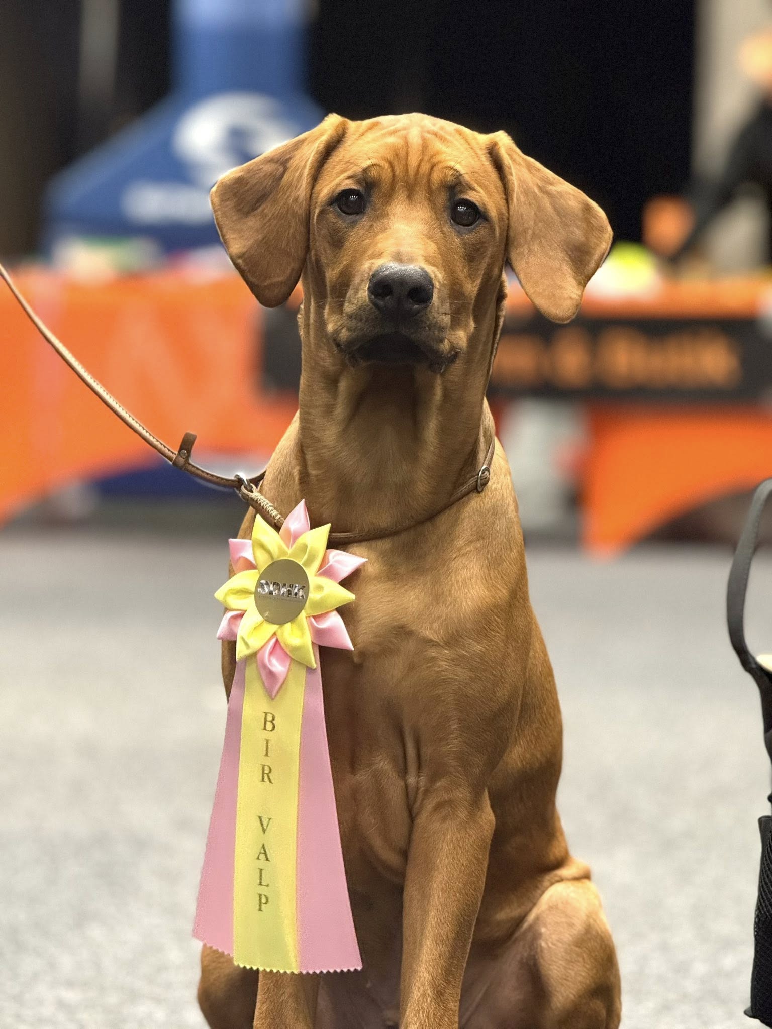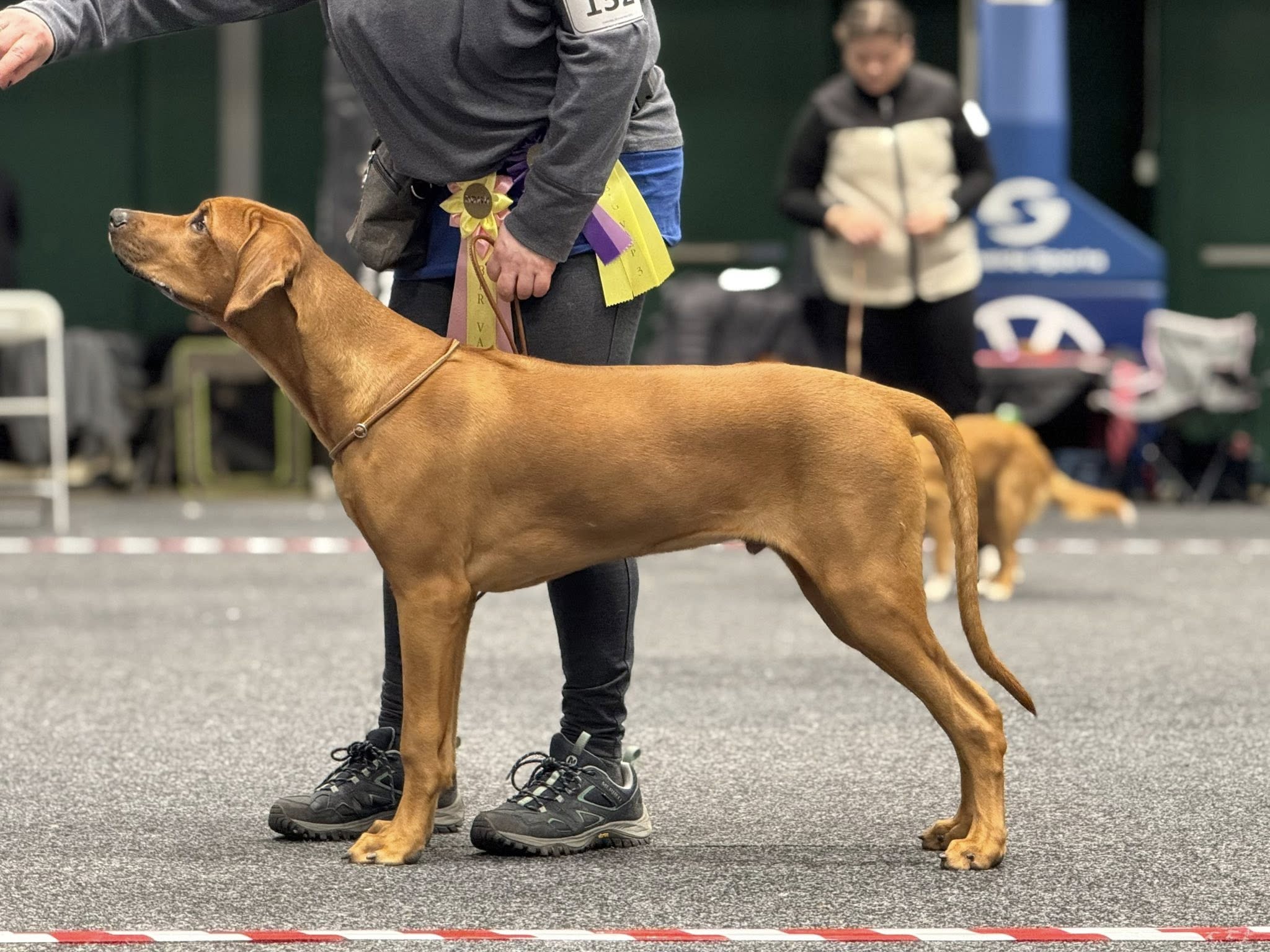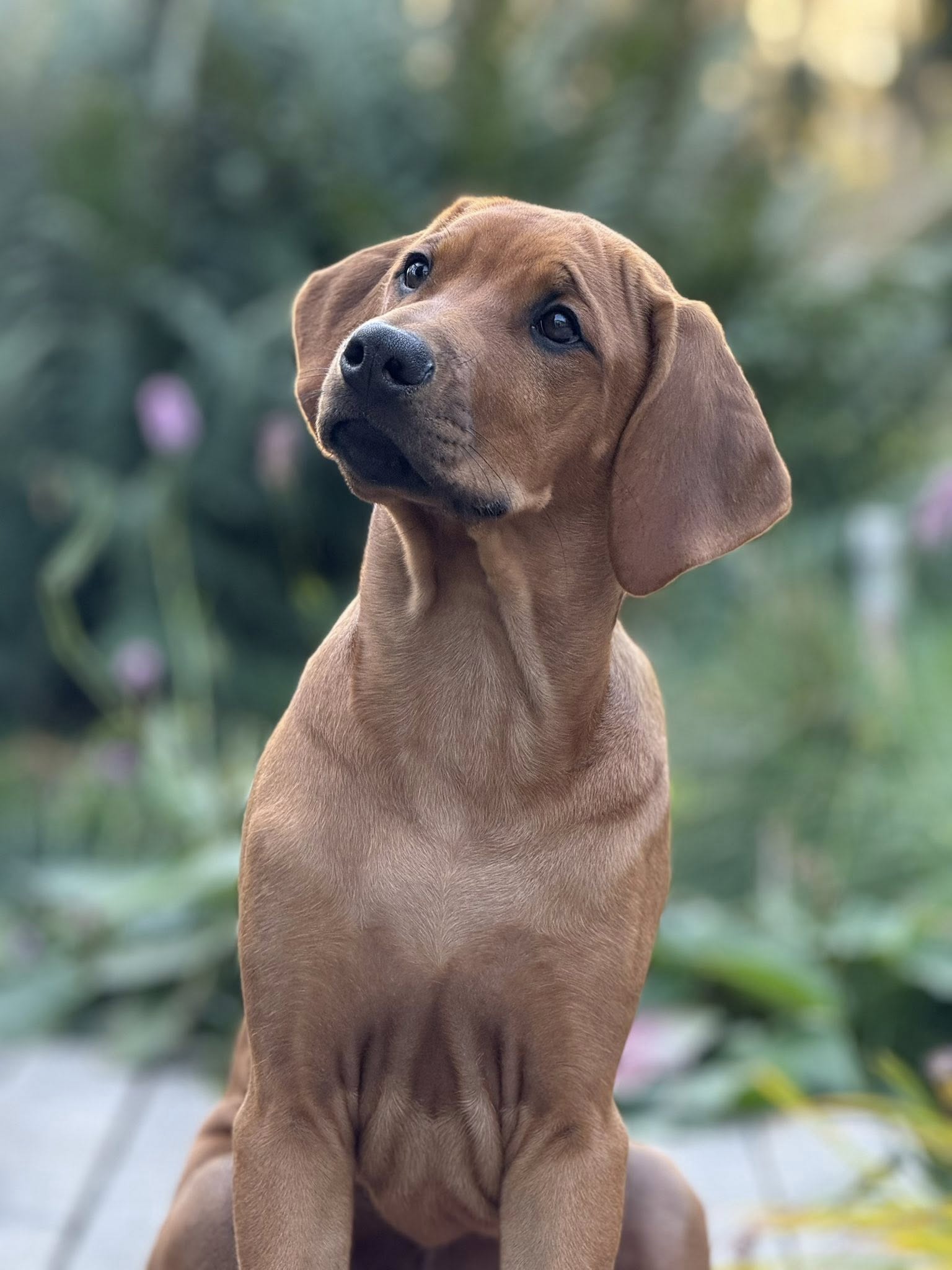 “From the beginning Hedda has shown us what a remarkable girl she is. She loves attention,cuddling, people in general and other animals. She gets along very well with both our other dogs and our two cats. She is sweet and very brave – not afraid of anything. Very easy to bring along and handle in every environment. Like most young ridgebacks she is always hungry, still quite intensive and also very interested in game and hunting. Besides of showing, which she has proven to excel at, we have also introduced her to game tracking and agility. Both which she loves and is very good at. Healthwise Hedda has been completely sound her whole life. No problems with allergies and no sensitive stomach.”